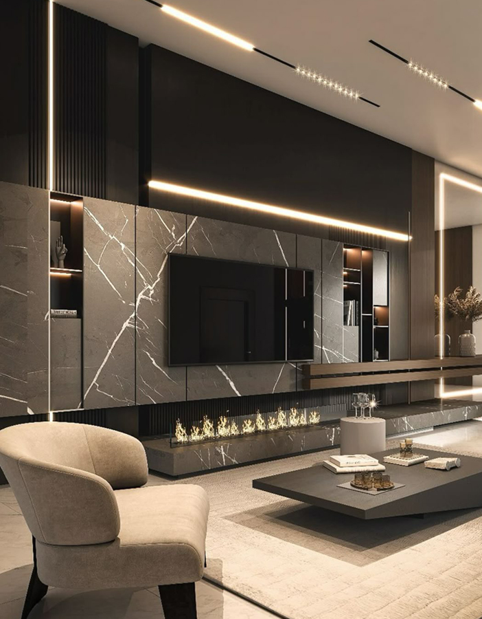 At JCR Interio, we specialize in creating TV units that faultlessly fit your home. If you choose the sleek, minimalist or something with details, our custom-made TV units are crafted from high-quality materials and contemporary finishes. We employ intelligent storage techniques such as as drawers, open shelves, and cable management systems to store your media devices, books, and decorative items in an organized manner.